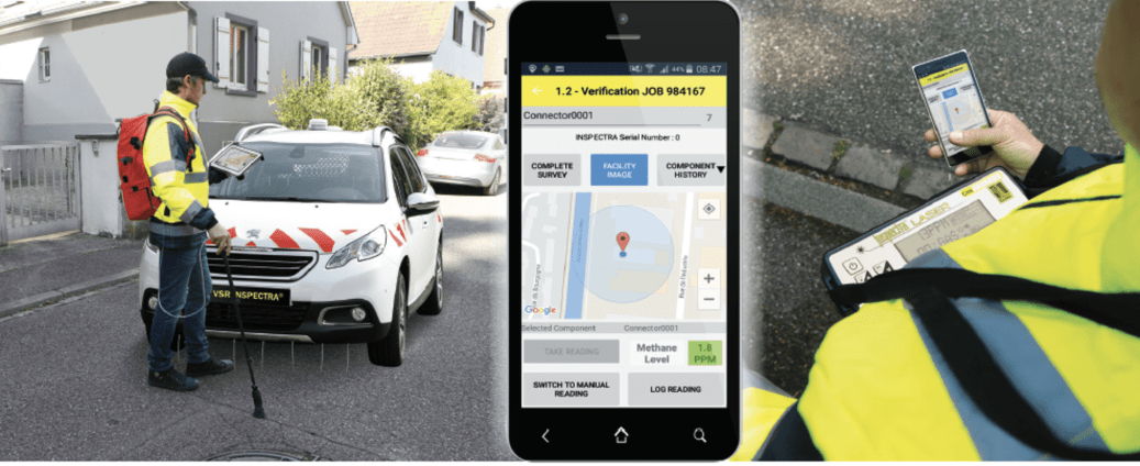 Survey procedures require that the network survey vehicle operator confirms immediately any indication of a gas leak on foot using an inspectra laser portable detector.